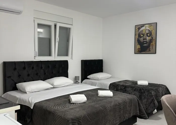 El Apartmani Zabjelo Podgorica tiene terraza y está situado a 4 km del Puente del Milenio.